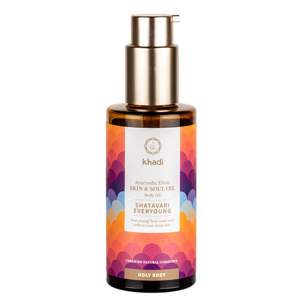 Aceite Antiedad ayurveda Shatavari de Khadi, es un aceite de rejuvenecimiento holístico: tonifica, revitaliza y asegura una elasticidad saludable de la piel.