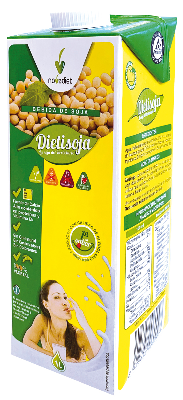 Optimiza tu alimentación con Dietisoja, una bebida de soja rica en calcio, proteínas y vitamina B2.