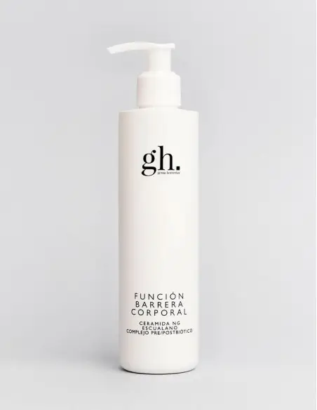 GH  Gema Herrerías loción corporal reparadora de la función barrera de la piel. Formulada con ingredientes de máxima calidad que protegen y reparan la función barrera, mantienen el agua de la piel, tratan arrugas y flacidez, devolviendo la luminosidad y suavidad desde las primeras aplicaciones.
