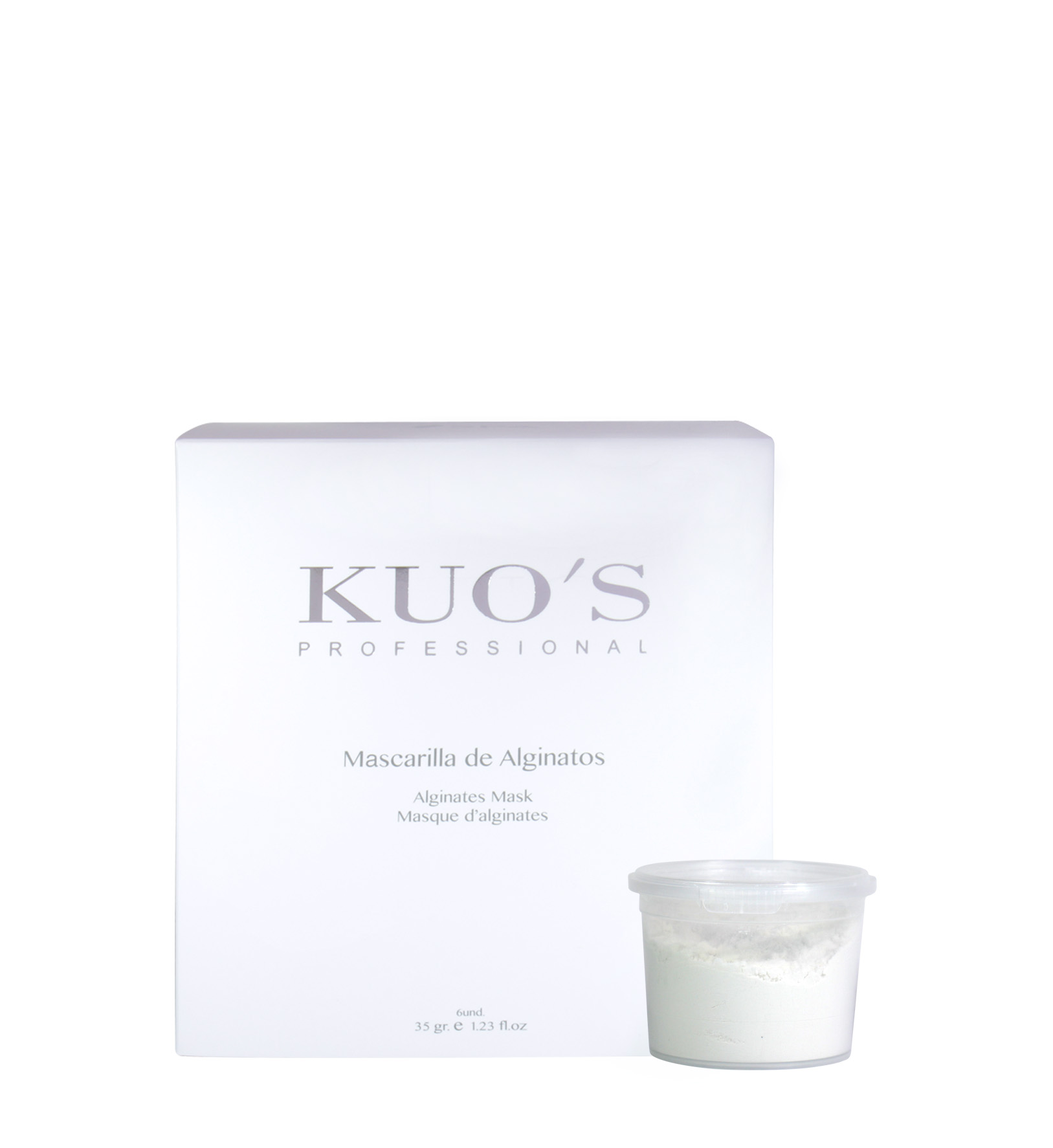 Modo de empleo: Verter el contenido del envase en un bol, llenar el envase con agua  y añadirlo al bol. Mezclar hasta obtener una pasta homogénea y aplicarla la mascarilla con una espátula Kuo’s sobre rostro, cuello y escote, con un grosor de 2 mm aproximadamente. Dejar actuar 15-20 minutos y una vez compactada, retirar levantándola desde el cuello en una sola pieza.