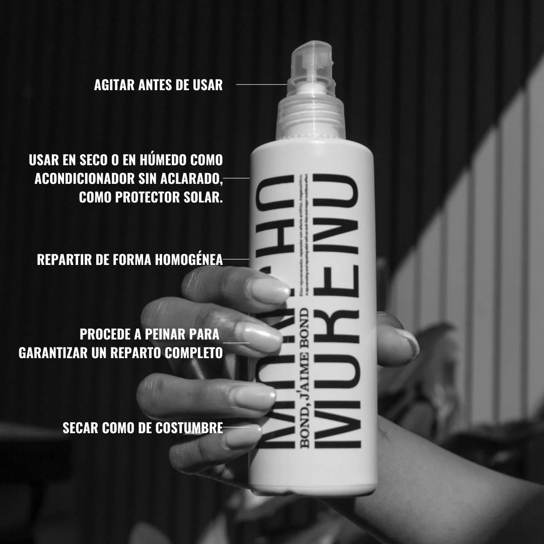 - Usar en seco o en húmedo como acondicionador sin aclarado, como protector solar (antes y durante la exposición solar o como protector térmico (antes del uso de plancha y secador).