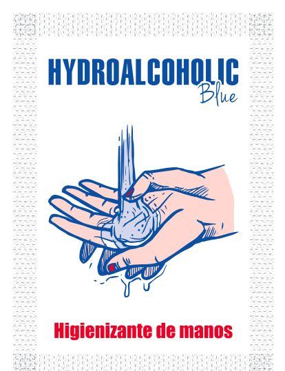 Loción hidroalcohólica líquida en tono azul claro indicada para la higinización de las manos sin aclarado.