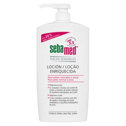 La emulsión de aceite en agua con el pH 5.5 de la piel sana, aporta humectación y protección. Además, refuerza y protege la función de barrera natural del manto ácido de la piel, sin aditivos ni colorantes. Su fórmula con complejo nutritivo con almendra y manteca de karité es ideal para la rutina de hidratación corporal de pieles secas. Su compuesto de lípidos al 30% nutre la piel al restaurar el equilibrio hidrolipídico y al restablecerse la humectación, se reduce la pérdida de agua por la piel. Su fórmula también contiene pantenol, que reduce la irritación e intensifica el efecto hidratante, regenera y calma la piel seca al aumentar su elasticidad. Fácil aplicación y absorción. Formato de 1000ml.